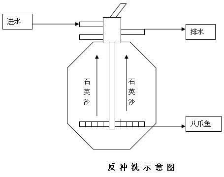 沙缸經過一段時間的使用,積存的污物阻礙水流使其減弱。這時就要對過濾器進行清潔。將控制開關打到"BACKWASH"位置,這時水流就變成了反方向流動,水流八爪魚進入沙缸底部,再經過沙層反沖上來,將以前捕集的污物,殘渣沖起從排水口排出。