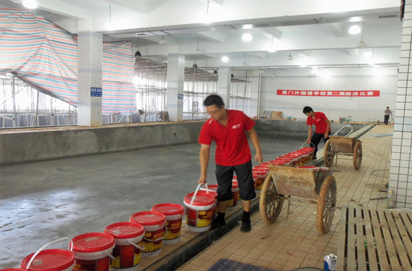 裝修施工前須對泳池蓄水48小時試驗(yàn),灌水后池壁外表面不得出現(xiàn)陰濕,每晝夜水量損耗小于每方2升,以檢驗(yàn)砼的抗?jié)B效果,確不滲漏,才進(jìn)行裝修施工,否則需采取措施,直至不滲水為止,再進(jìn)入裝修。