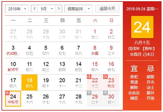 2018年,中秋放假通知: