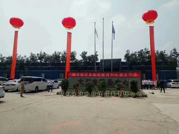 雄安新區(Xiongan New Area)位于中國河北省保定市境內,地處北京、天津、保定腹地,規劃范圍涵蓋河北省雄縣、容城、安新等3個小縣及周邊部分區域,我公司于2018年4月承建的大鯊魚健身會所歷時3個月投入使用,會所位于安新縣城內, 占地面積13000平方米。總體投資1個億,會所配備國際一線品牌健身器材,并由專業的私人教練隊伍全程跟蹤指導,室內配備恒溫游泳館,全部由鄭州泳潔水處理設備有限公司承建。其中過濾設備采用中南海專用曝氣呼吸精濾系統,為泳潔專利技術,水質活化、鮮化,流水永遠不腐。由于水的潔凈度很高,有一種天然的藍色,自然透明。加熱系統采用英國進口品牌,水溫水質均遠遠高于國標。泳潔泳池重力式水處理過濾器是以靠水位的高度差進行過濾,水泵揚程6-8米,原水進入設備后先水流細分進行曝氣,增加水體溶解氧含量,使水活化、鮮化,然后自上而下的過濾。濾料采用七層反復合天然礦石精制而成,在不投加任何絮凝劑、混凝劑、助凝劑情況下,可以有效截留原水中懸浮物和有害物質,濾后水質經檢測小于1NTU。在重力的作用下巧妙利用虹吸原理實現了自動反洗自動過濾的功能,真正成為了高效節能的水力自動化水處理過濾設備。