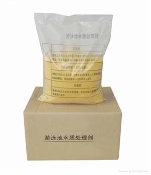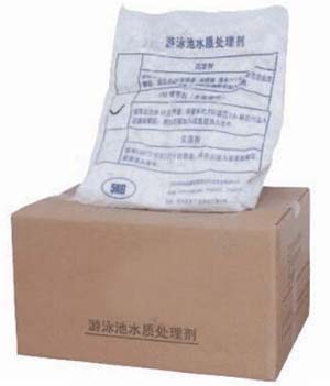 泳池放滿水后,(視水質(zhì)情況)投放TCCA片劑,速溶片劑按每m32-4g量直接均勻地撇如池水中,藥片沉入池底月15分鐘即完全溶解。放藥時(shí)間選擇收?qǐng)龊蠡蛟缟蠠o(wú)人游泳時(shí)。正常時(shí)間最好在開(kāi)放前1-2小時(shí)加藥。緩溶片劑在循環(huán)系統(tǒng)加藥裝置投加。絮凝劑可依據(jù)水質(zhì)渾濁度的標(biāo)準(zhǔn)來(lái)施放。不符合此標(biāo)準(zhǔn)應(yīng)投放,絮凝劑一般每星期1-2次。用量沒(méi)1000m3水放5-10kg,投放前應(yīng)測(cè)試水中PH值,如PH值偏低(<7)應(yīng)加PH。