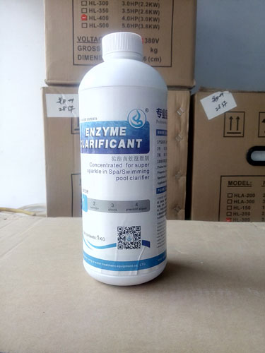 是酵素澄清劑針對水療池、按摩池等氣泡水柱沖擊水的最新的改善配合,對池水因油脂造成混濁和變色具有強大功效,可做預防性添加。使用時若配水質活化劑的使用,可同時解決池水混濁,起泡和氯臭味問題與減少水位線污痕的出現。