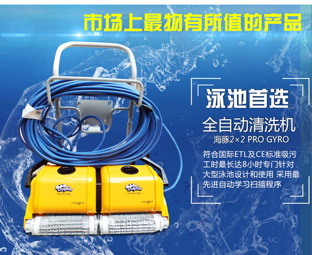 海豚2x2游泳池吸污機是以色列軍工轉民用產品代表,配電線防纏繞設備,配陀螺儀,標準直線行走,可爬墻清洗池壁及水線,近幾屆奧運會指定使用產品,全球市場份額40%。