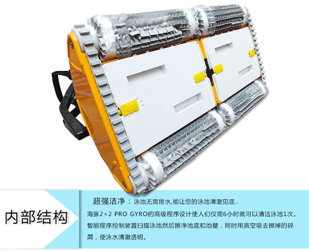 海豚2×2游泳池吸污機獨立操作,耗電量低,清掃、洗刷、過濾讓您的泳池清潔無后顧之憂,集新性能與改進性能于一體,可完成擦洗、清掃、真空吸附及過濾工作,使你的泳池清澈見底。